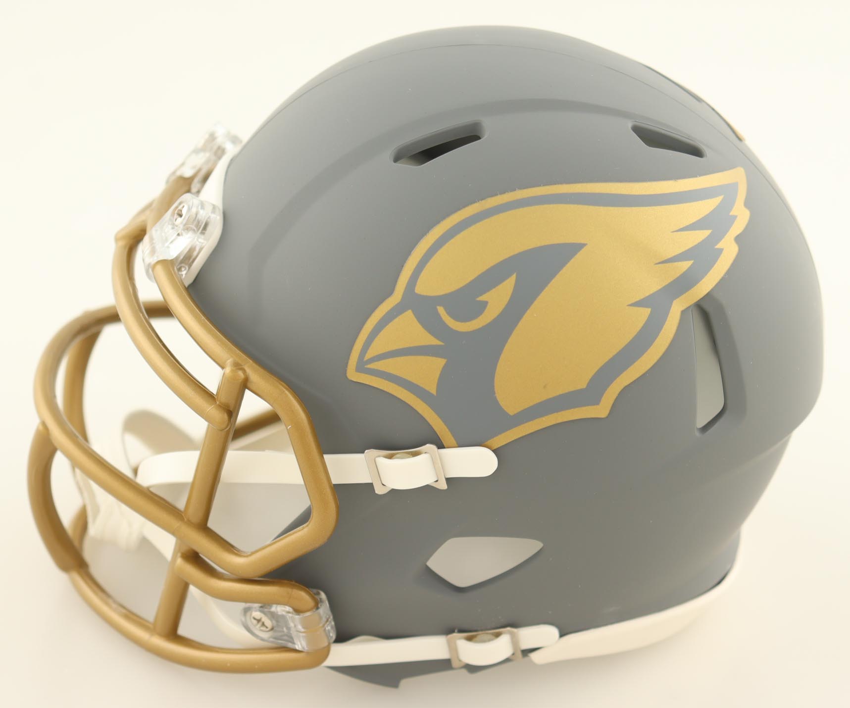 Riddell Arizona Cardinals Slate Alternate speed mini helmet. Hand-signed in by Patrick Peterson. Please note the smudged signature.