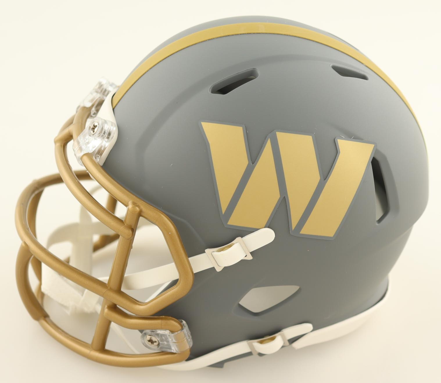 Riddell Washington Commanders Slate Alternate Speed Mini Helmet. Hand-signed and inscribed by Joe Theismann.
