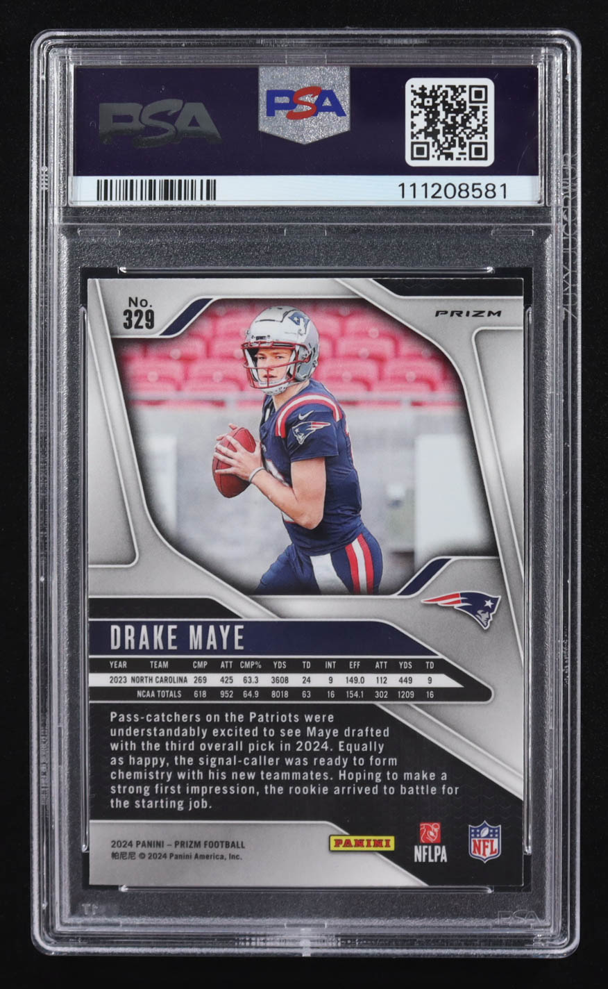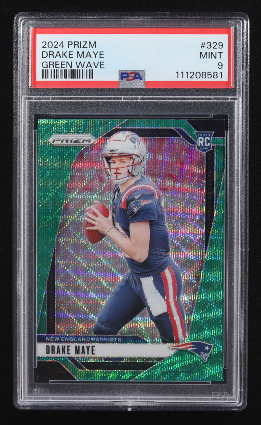 Drake Maye 2024 Panini Prizm Prizms Green Wave #329 RC (PSA 9)