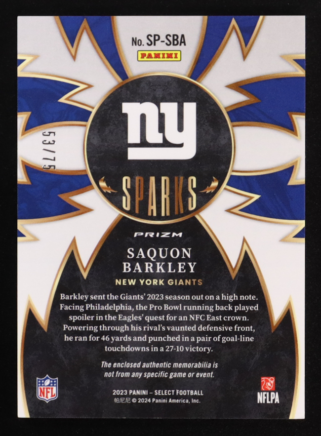 Saquon Barkley 2023 Select Sparks Materials Prizm White #44 #53/75