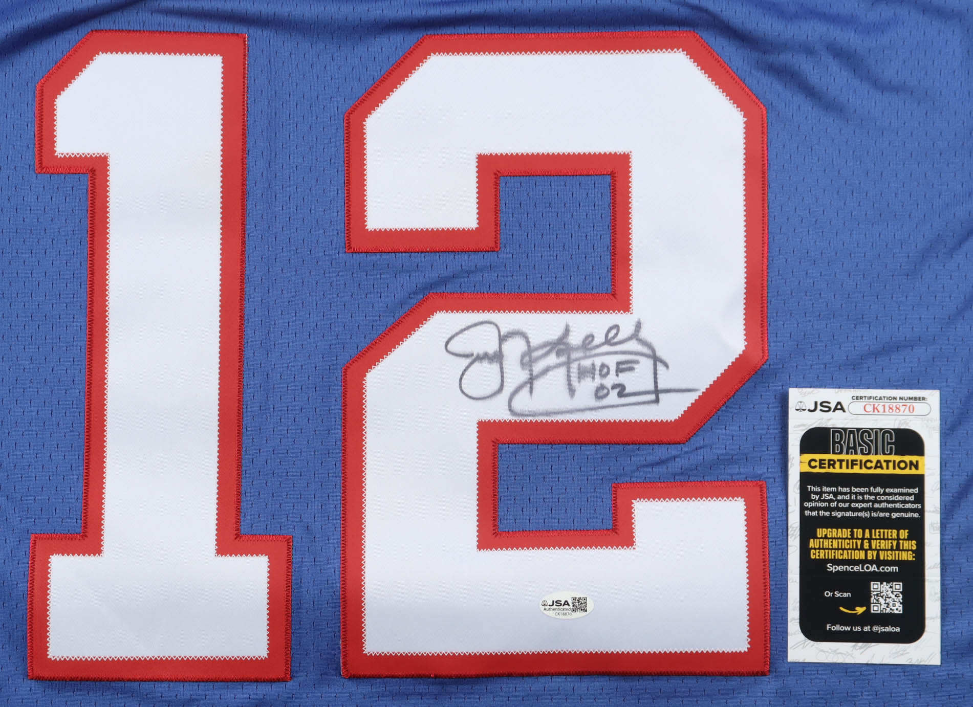Jim Kelly Signed Bills Mitchell & Ness Authentic Jersey Inscribed "HOF 02" (JSA)