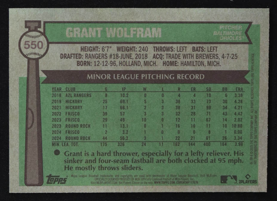 Grant Wolfram 2025 Topps Heritage #550 RC