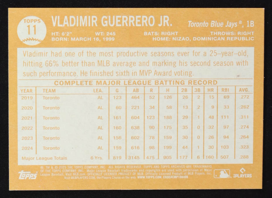 Vladimir Guerrero Jr. 2025 Topps Archives #11