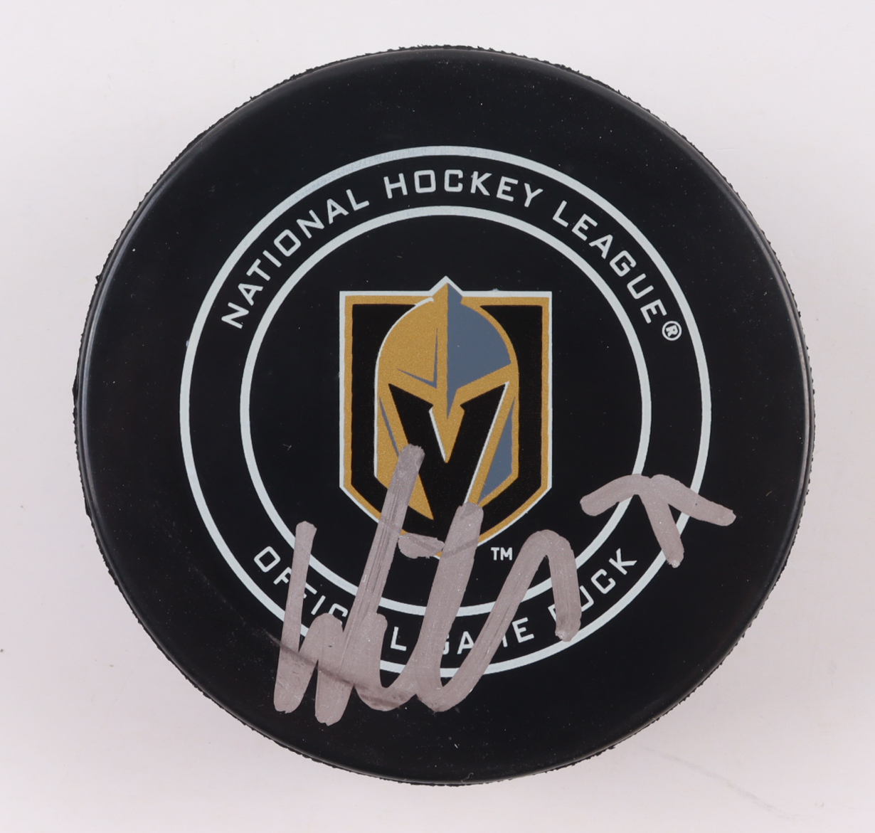Vegas Golden Knights Logo Hockey Puck. Hand-signed by William Karlsson.