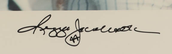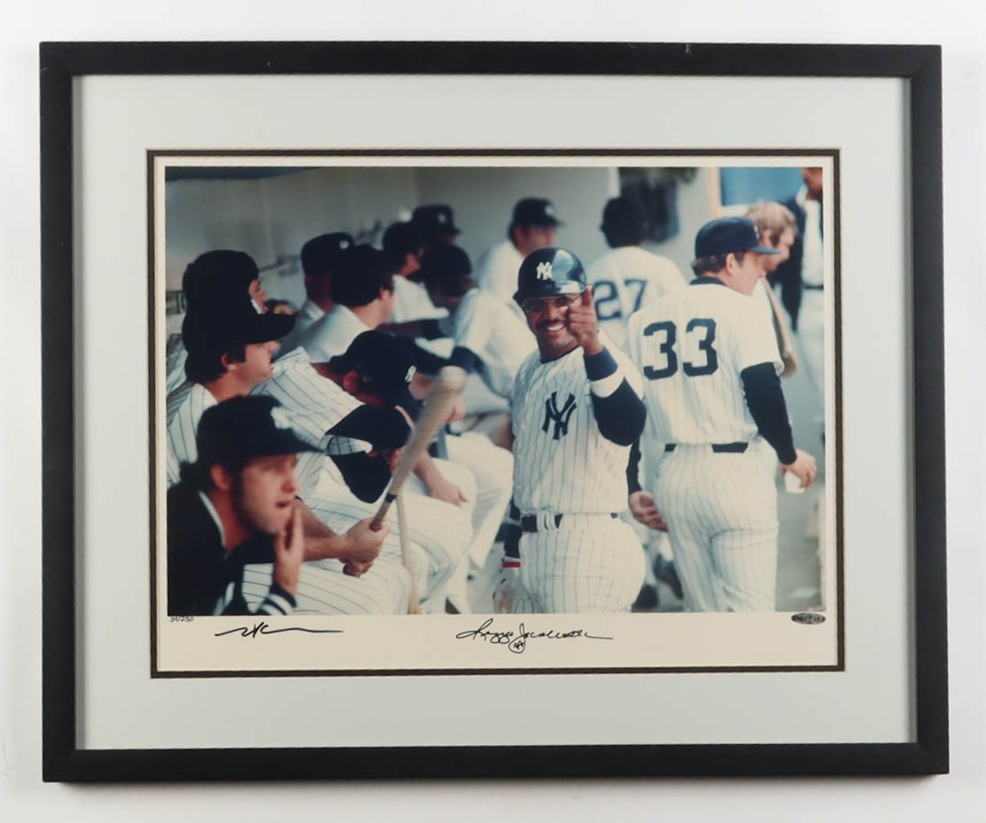 Custom frame measures approximately 21" x 26" in size and features a 16" x 20" in size and has been hand-signed Reggie Jackson (New York Yankees, HOF). Please see photos for details regarding the condition of the item. Note that the item has been labeled Limited Edition # 34 / 250.