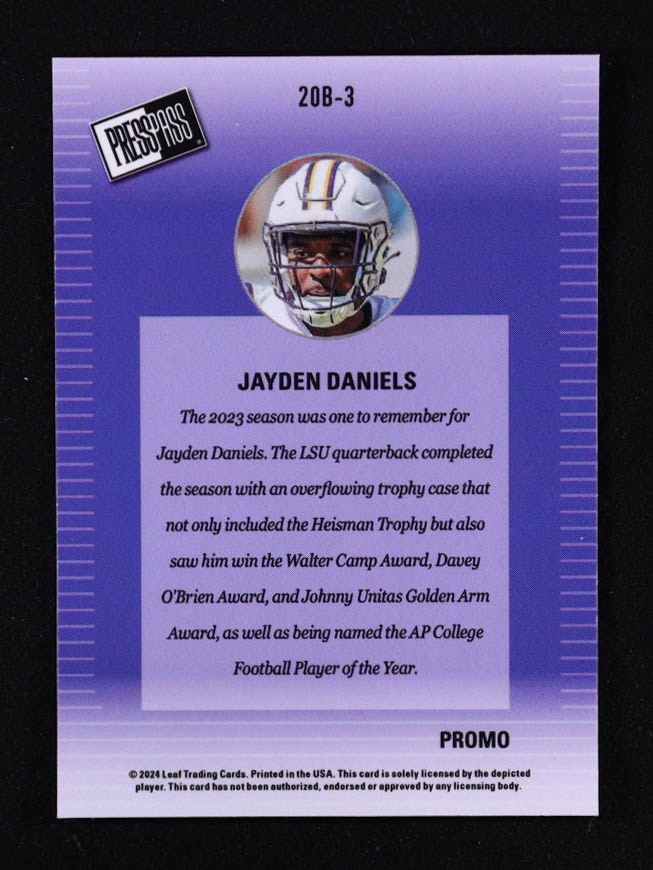 Jayden Daniels 2024 Leaf Collective Promo '00 Press Pass Shimmer Light Blue #20B3 RC