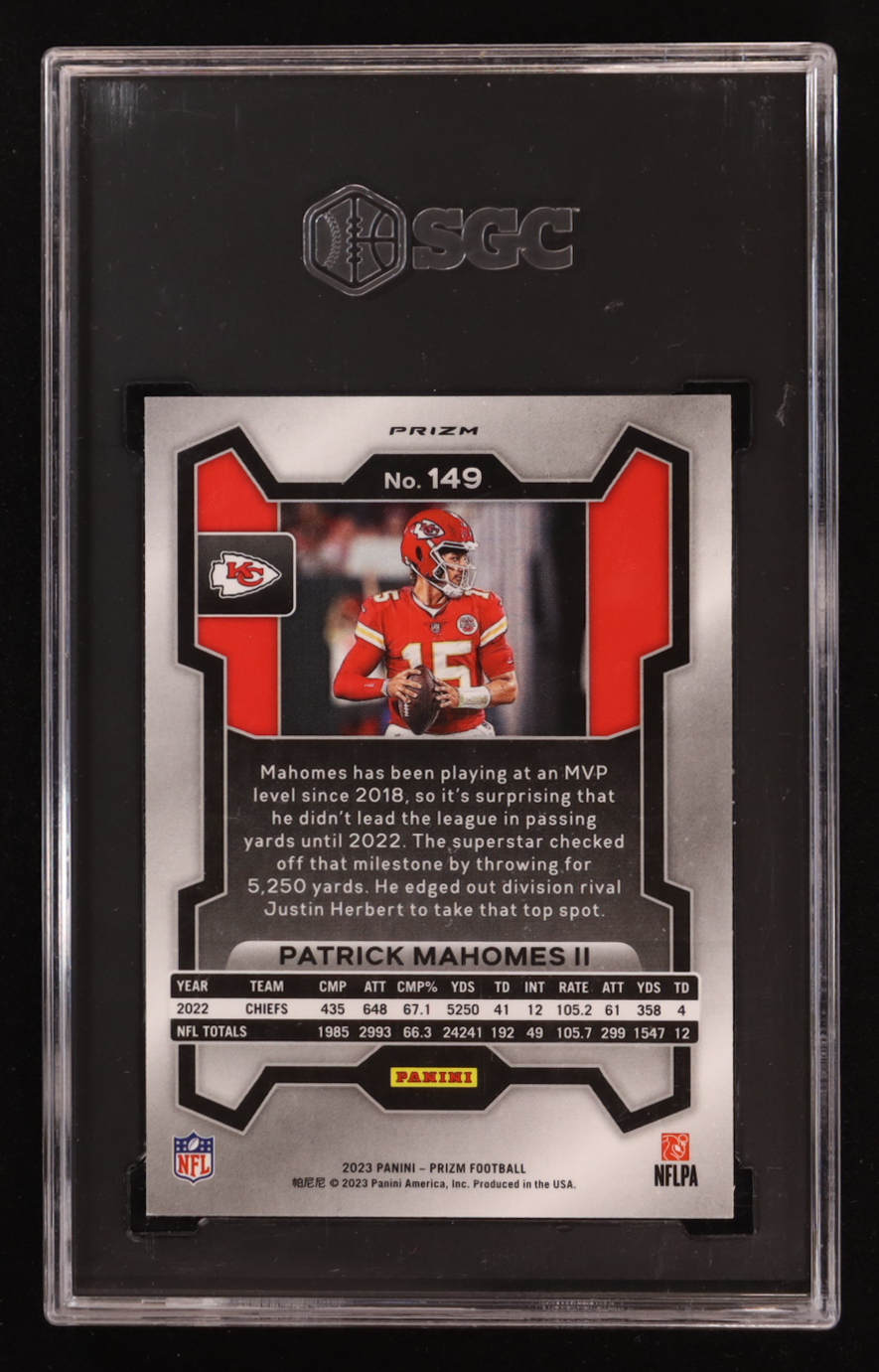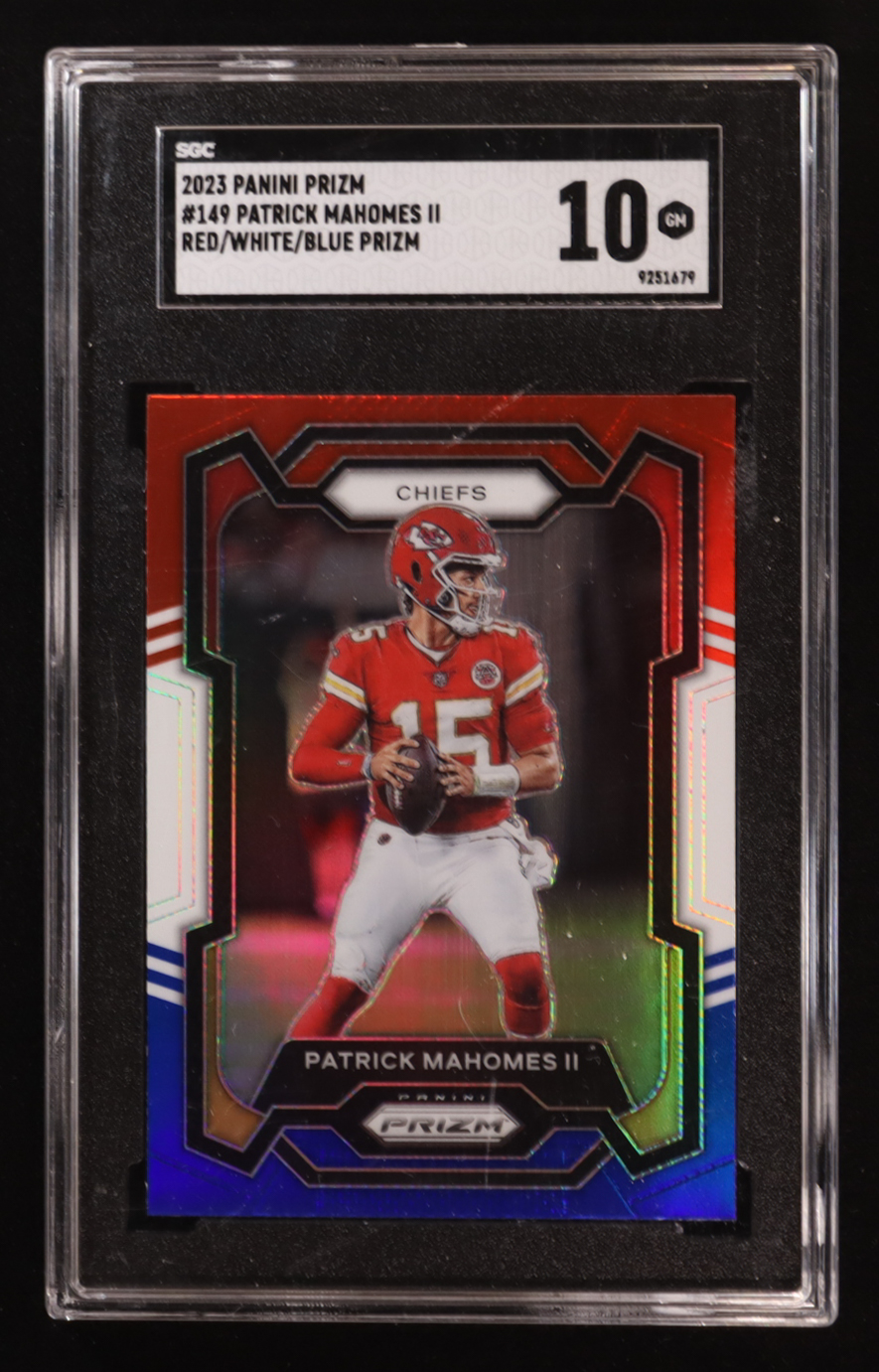 Patrick Mahomes II 2023 Panini Prizm Prizms Red White and Blue #149 (SGC 10)