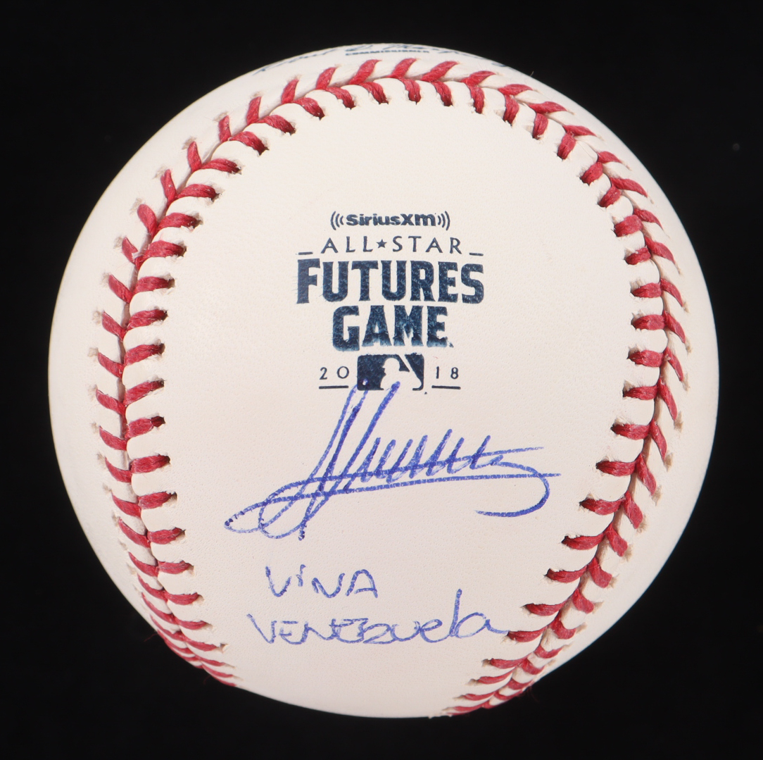 Rawlings Official Major League 2018 All-Star Futures Game Logo Baseball. Hand-signed and inscribed by Andres Gimenez (New York Mets). Please note, there are minor stains throughout the baseball.