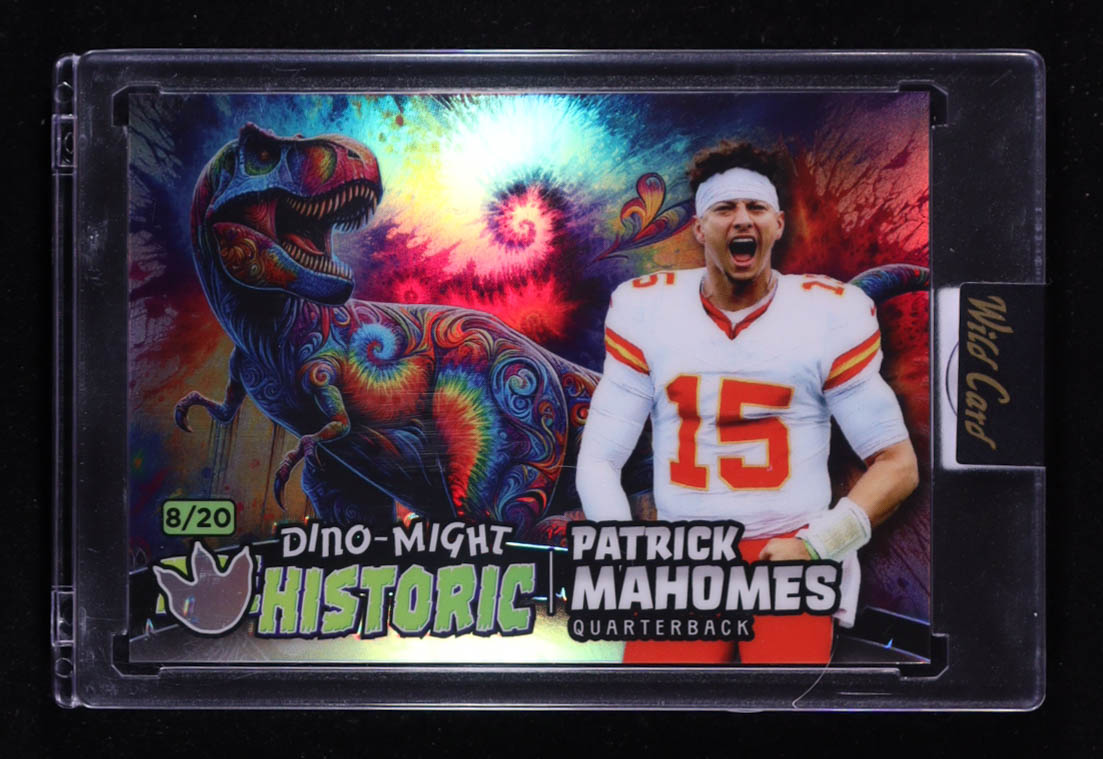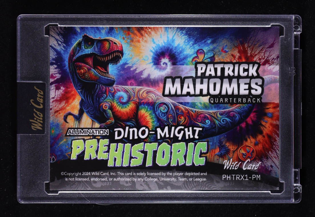 Patrick Mahomes 2024 Wild Card Alumination Dino-Might Pre-Historic Tyrannosaurus Rex Blue Rainbow Foil #PHTRX1-PM #08/20