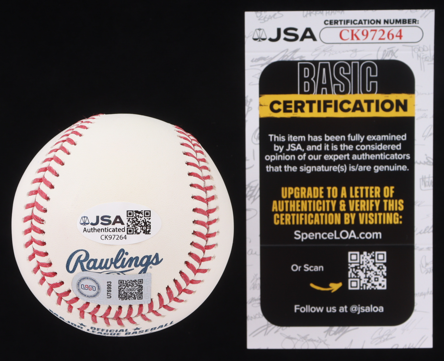 The autograph(s) includes an official James Spence Authentication (JSA) hologram and matching COA, as well as an official USA Sports Marketing (USA SM) hologram and matching COA for authenticity purposes.