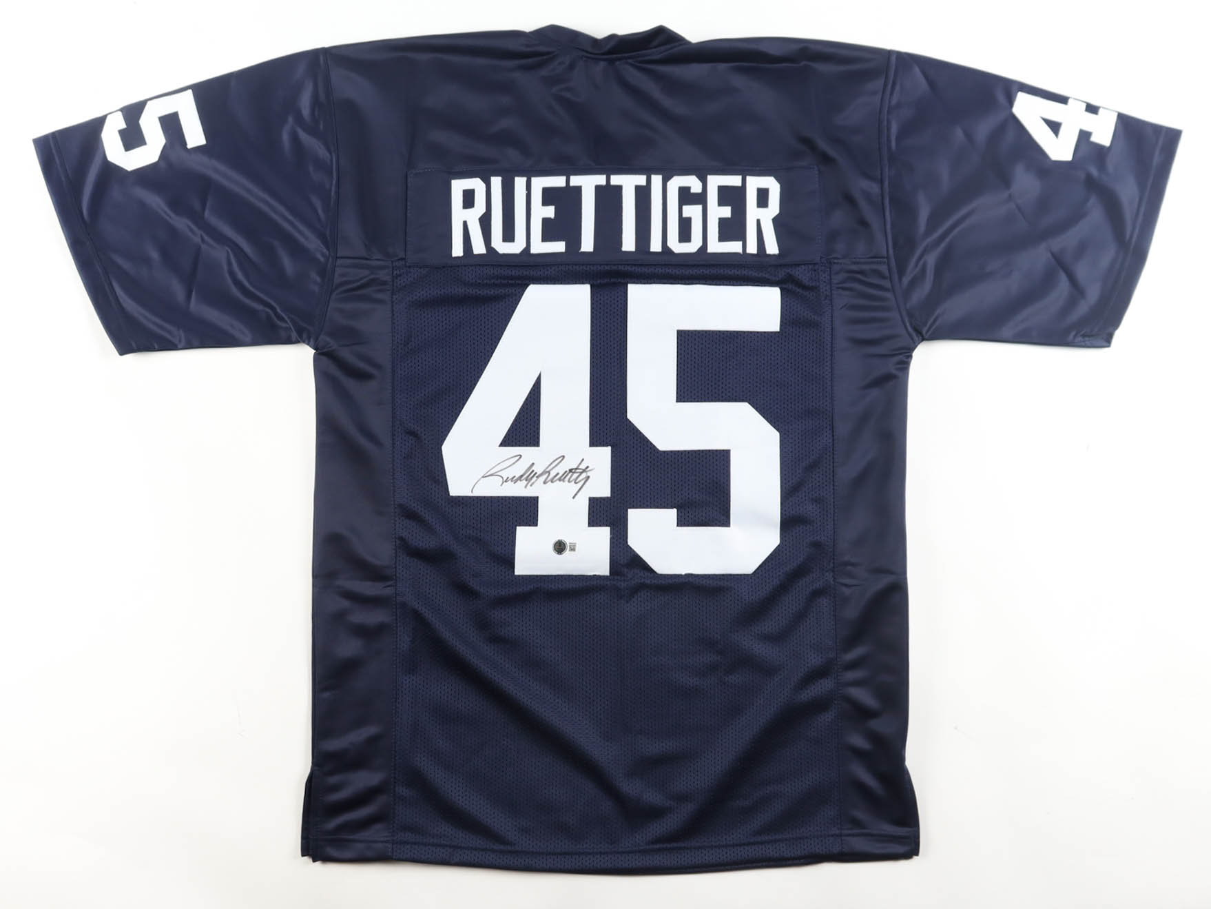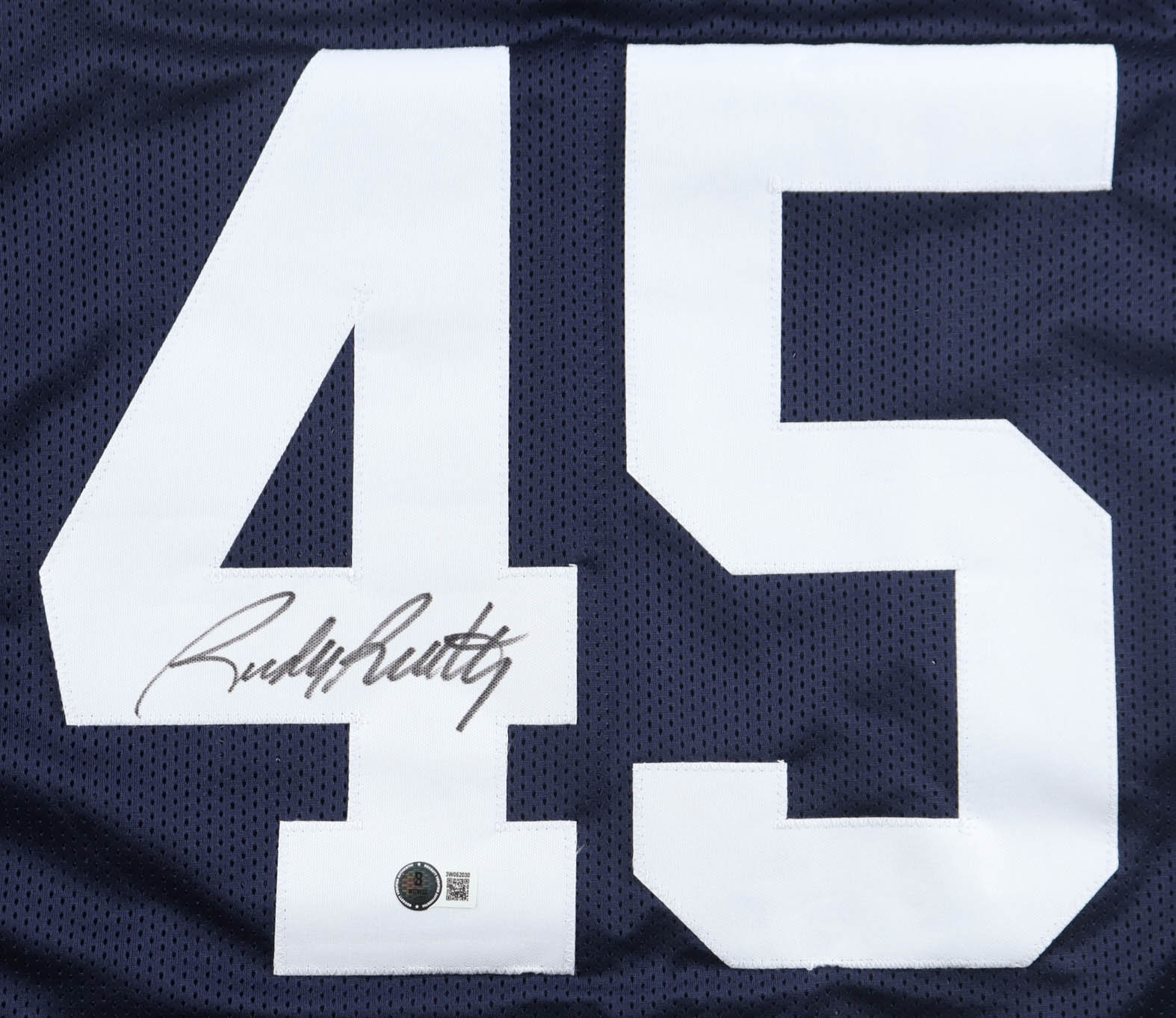 Custom jersey with everything sewn on, size XL. Hand-signed by Rudy Ruettiger.