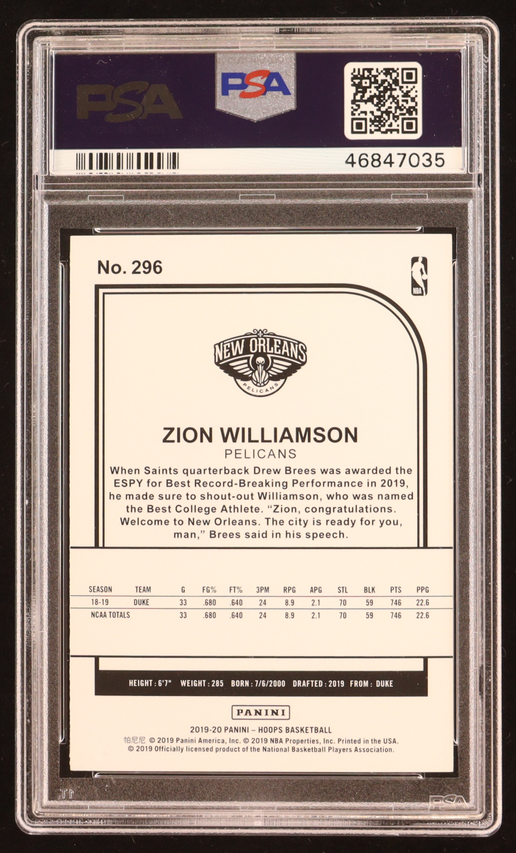 Zion Williamson 2019-20 Hoops Winter #296 RC (PSA 10)