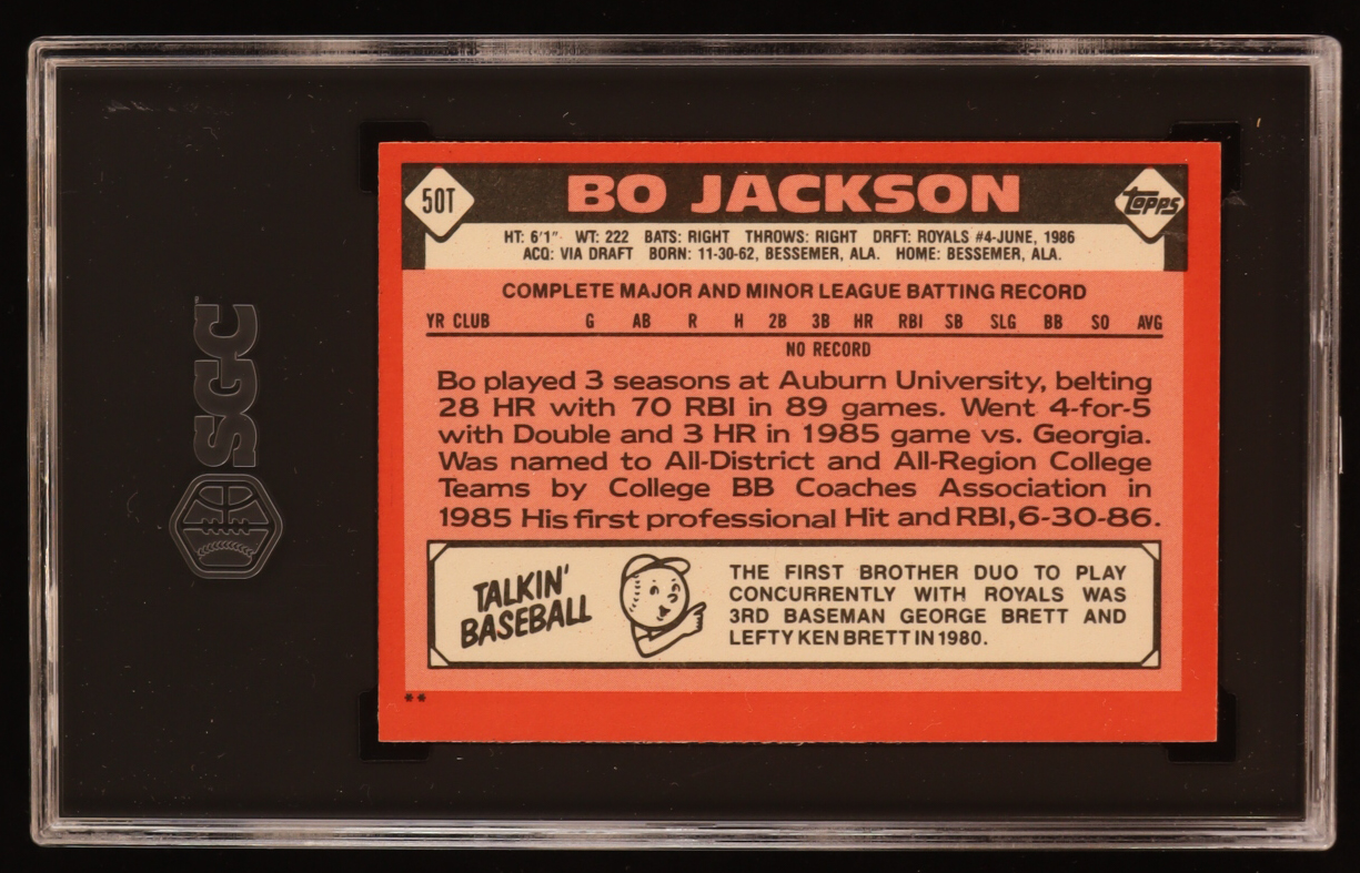 Bo Jackson 1986 Topps Traded #50T XRC RC (SGC 8)