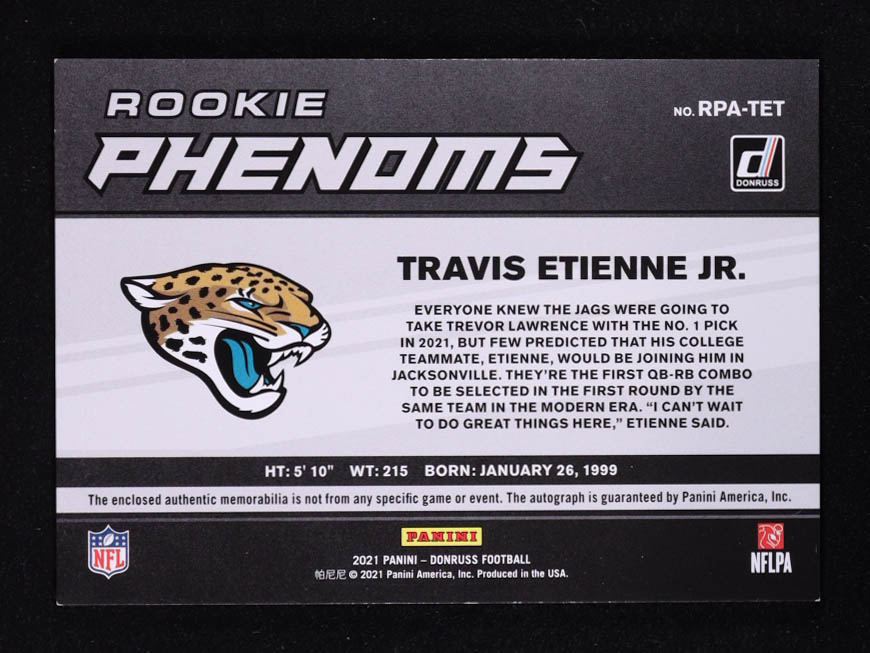 Travis Etienne Jr. 2021 Donruss Optic Rookie Phenoms #RPATET #71/99 JSY AU RC