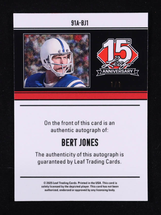 Bert Jones 2025 Leaf 15th Anniversary '91 Leaf Autographs Pink Lava #91ABJ1 #1/1