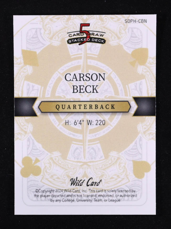 Carson Beck 2024 Wild Card 5 Card Draw Stacked Deck Gold Cross Hatch #SDPHCBN #1/1 RC