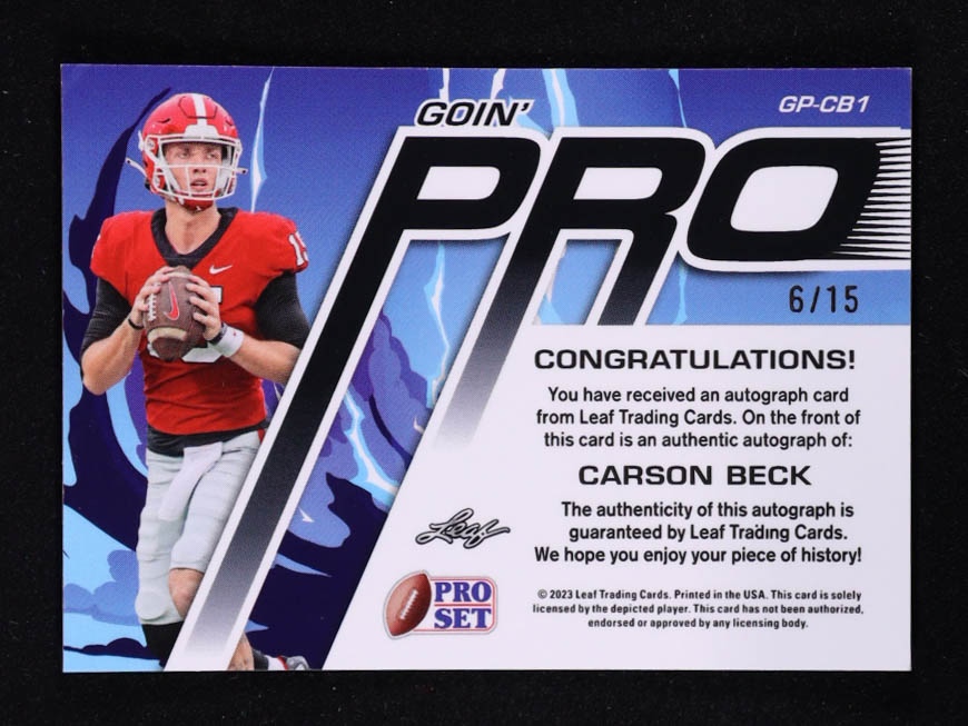 Carson Beck 2023 Pro Set Metal Goin' Pro Autographs Purple Prismatic #GPCB1 #6/15 RC