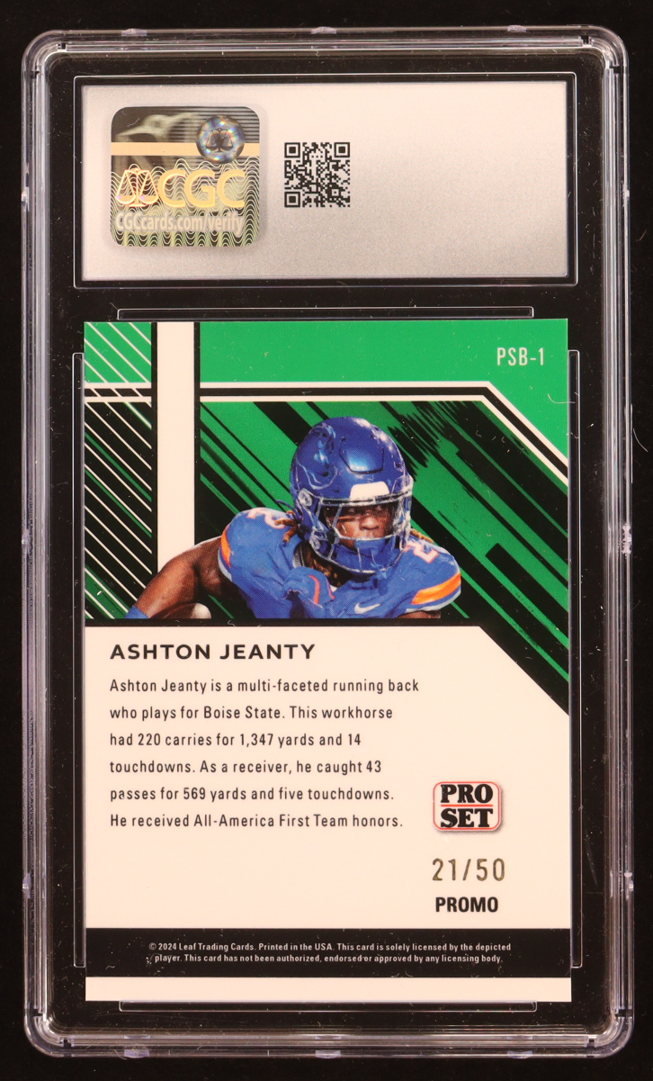 Ashton Jeanty 2024 Leaf Collective Promo Pro Set Shimmer Green #PSB1 RC #21/50 (CGC 10)