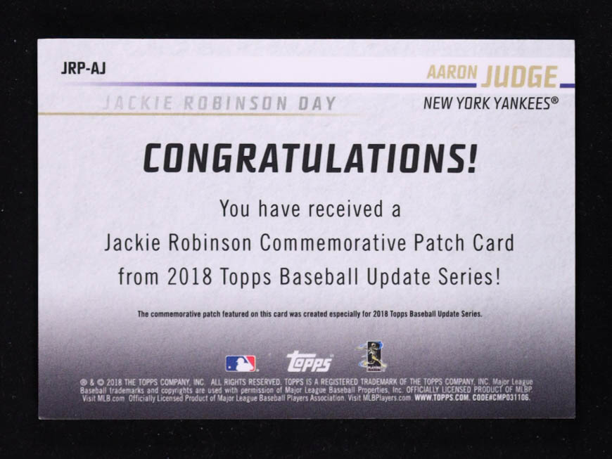 Aaron Judge 2018 Topps Update Jackie Robinson Commemorative Patches #JRPAJ RC