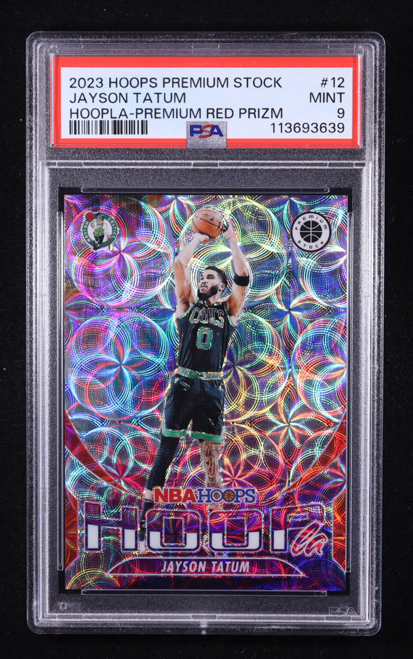 Jayson Tatum 2023-24 Panini NBA Hoops Premium Stock Hoopla Red Prizm #12 #36/88 (PSA 9)