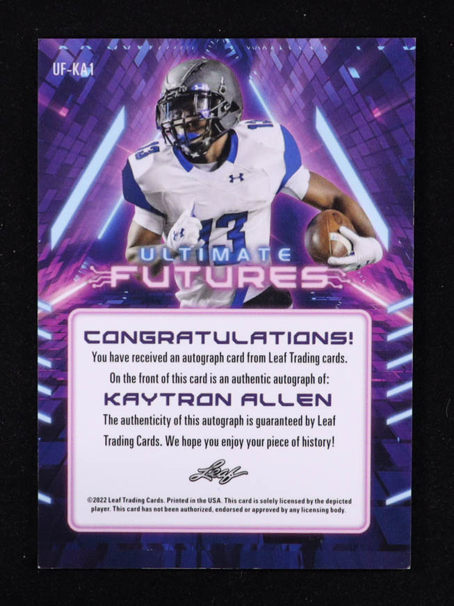 Kaytron Allen 2022 Leaf Ultimate Draft Ultimate Futures Autographs Platinum Spectrum #UFKA1 #2/50 RC