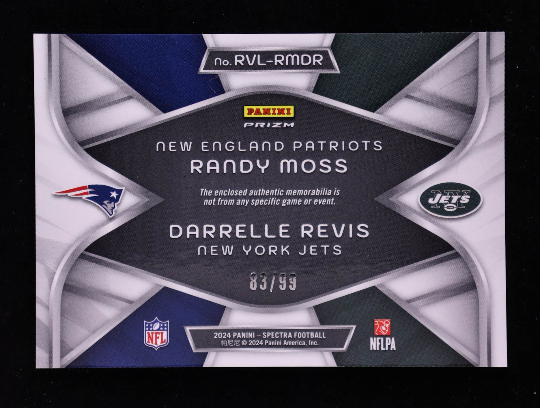 Darrelle Revis / Randy Moss 2024 Panini Spectra Rivals Materials #13 #83/99