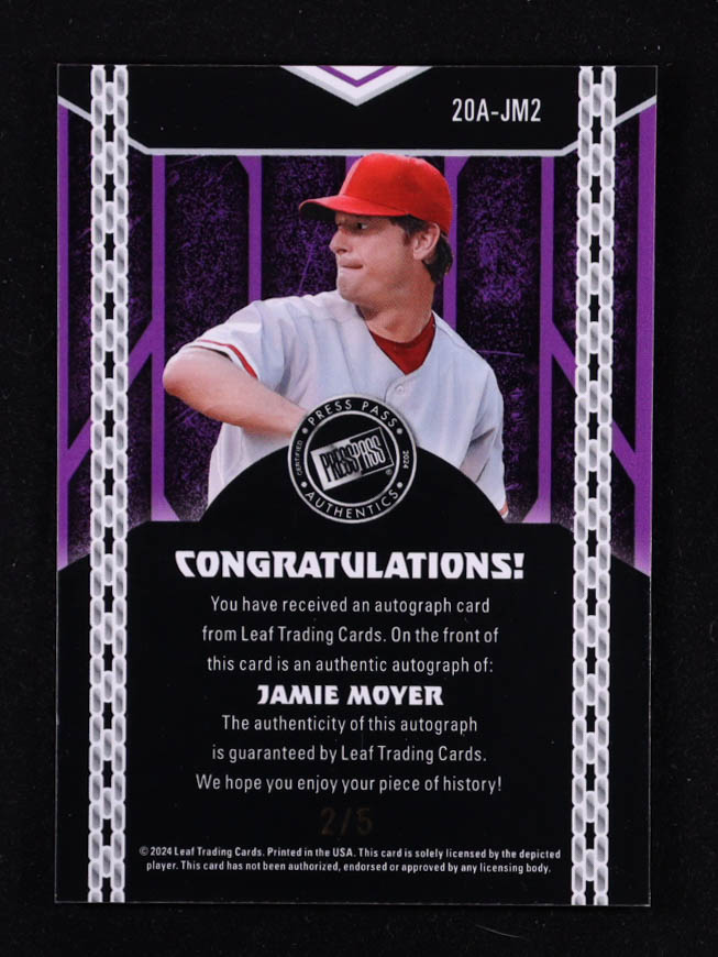 Jamie Moyer 2024 Leaf Metal Collective '00 Press Pass Autographs Purple Shimmer #20AJM2 #2/5