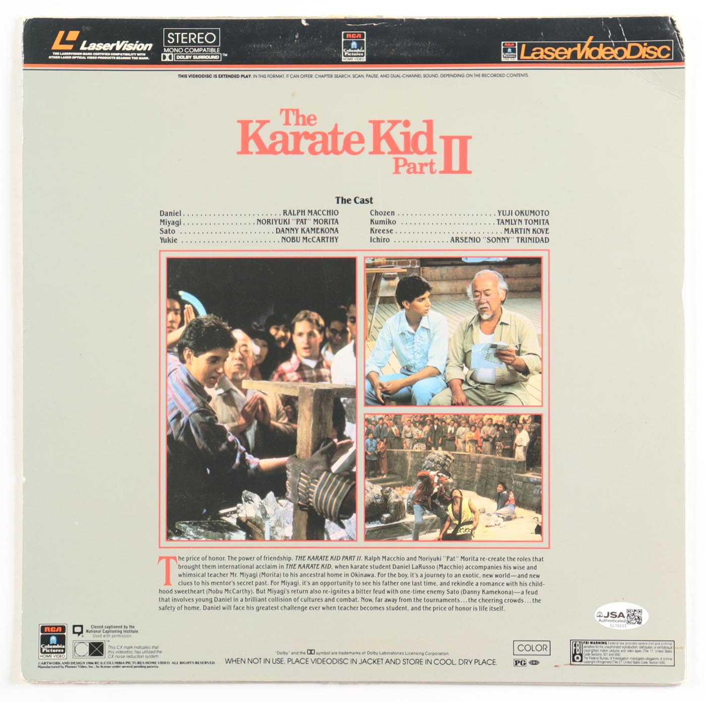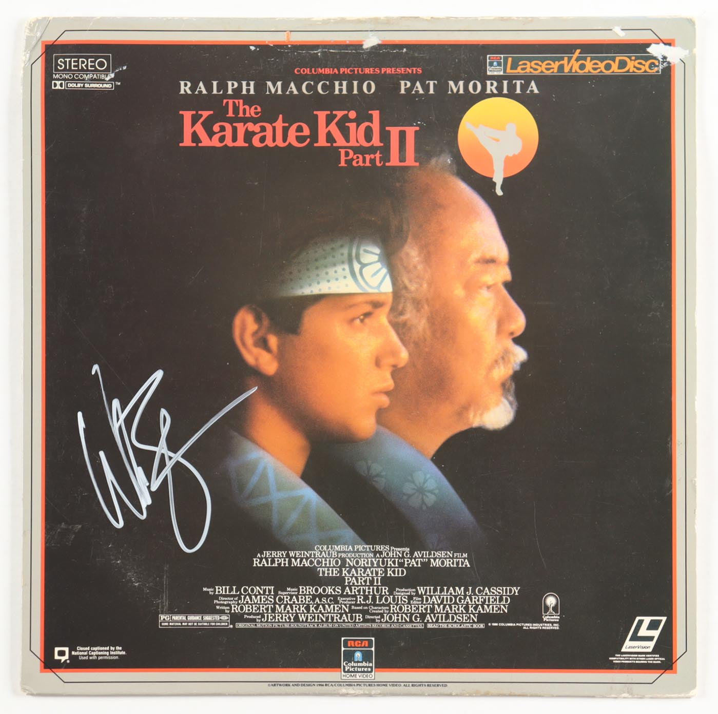 "The Karate Kid Part II" Vinyl Record Soundtrack Album has been hand-signed by William Zabka. Please note, the vinyl record is included and there are creases and tears throughout the cover.