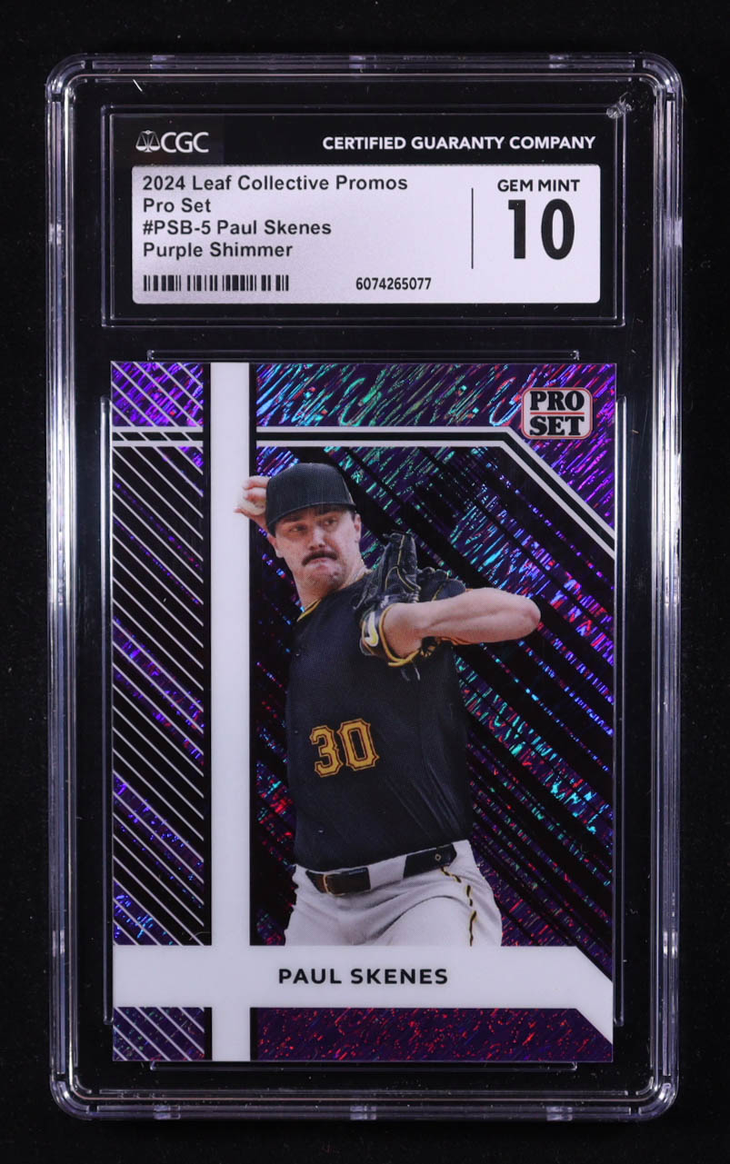 Paul Skenes 2024 Leaf Collective Promos Pro Set Purple Shimmer #PSB-5 RC #132/199 (CGC 10)