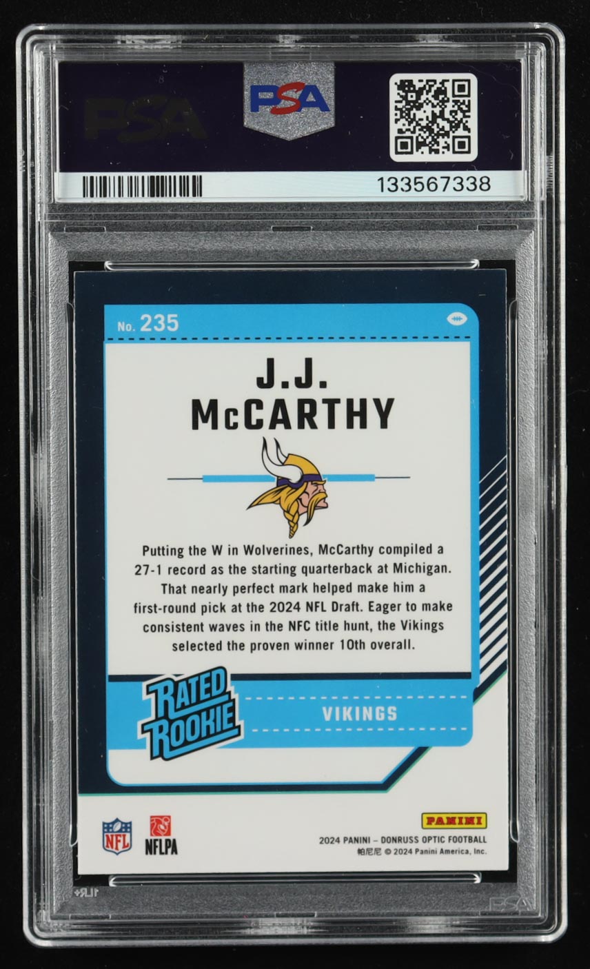 JJ McCarthy 2024 Donruss Optic #235 RC (PSA 9)
