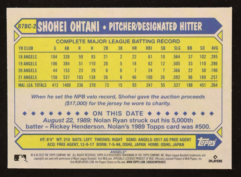 Shohei Ohtani 2022 Topps Chrome '87 Topps #87BC2