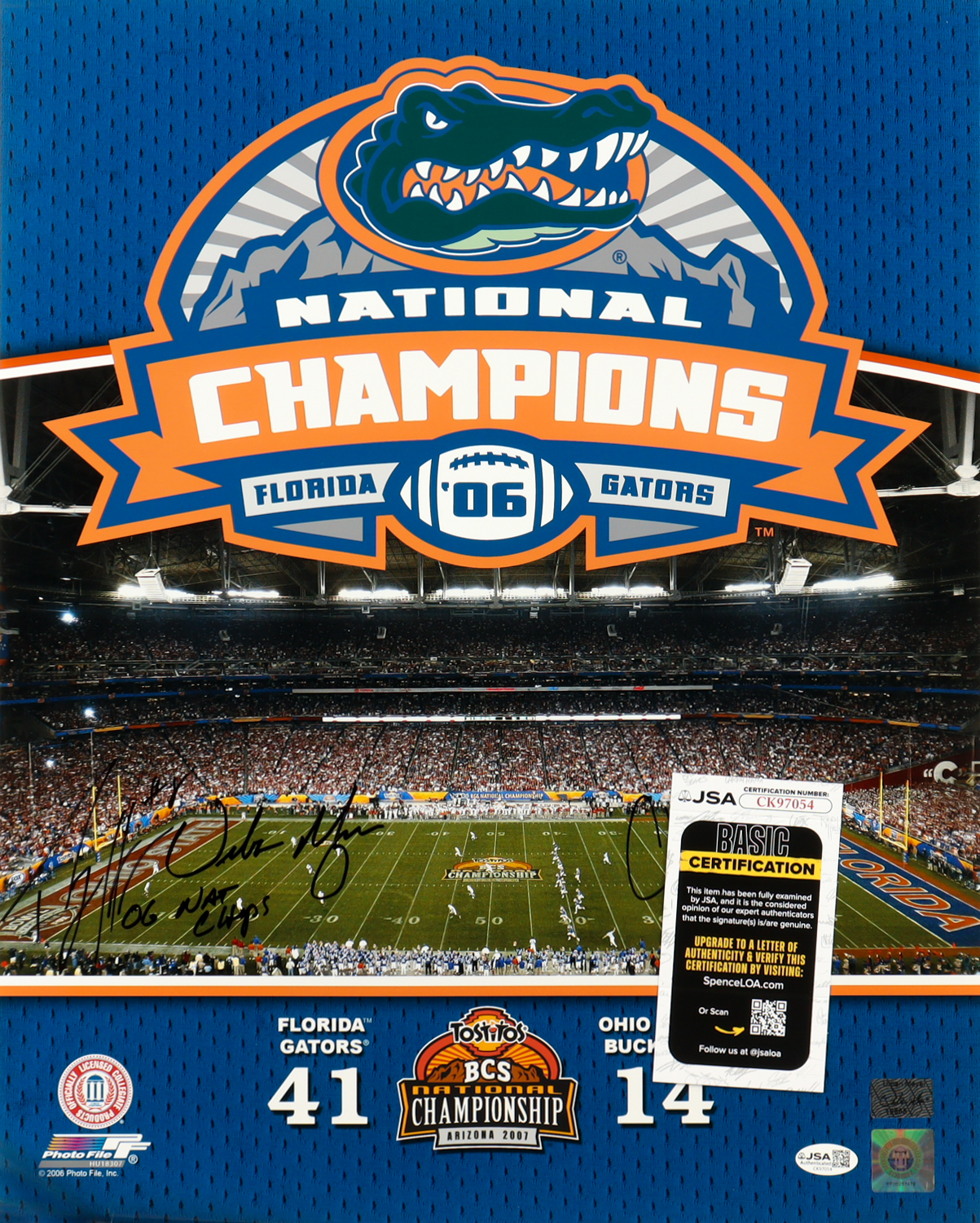 Urban Meyer & Chris Leak Signed Florida Gators 16x20 Poster Inscribed "06 Nat Champs" & "2006 BCS MVP" (JSA)