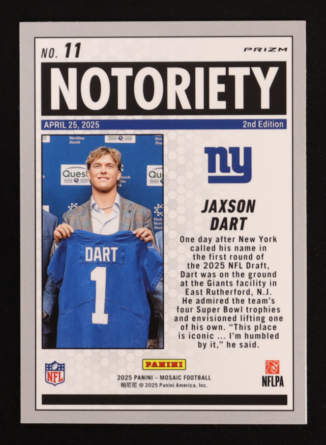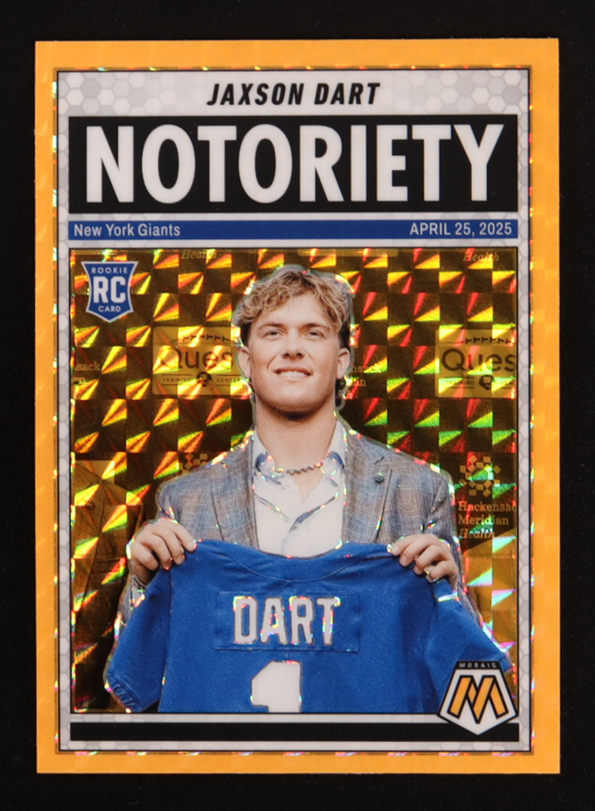Jaxson Dart 2025 Panini Mosaic Notoriety Mosaic Orange Fluorescent #11 RC