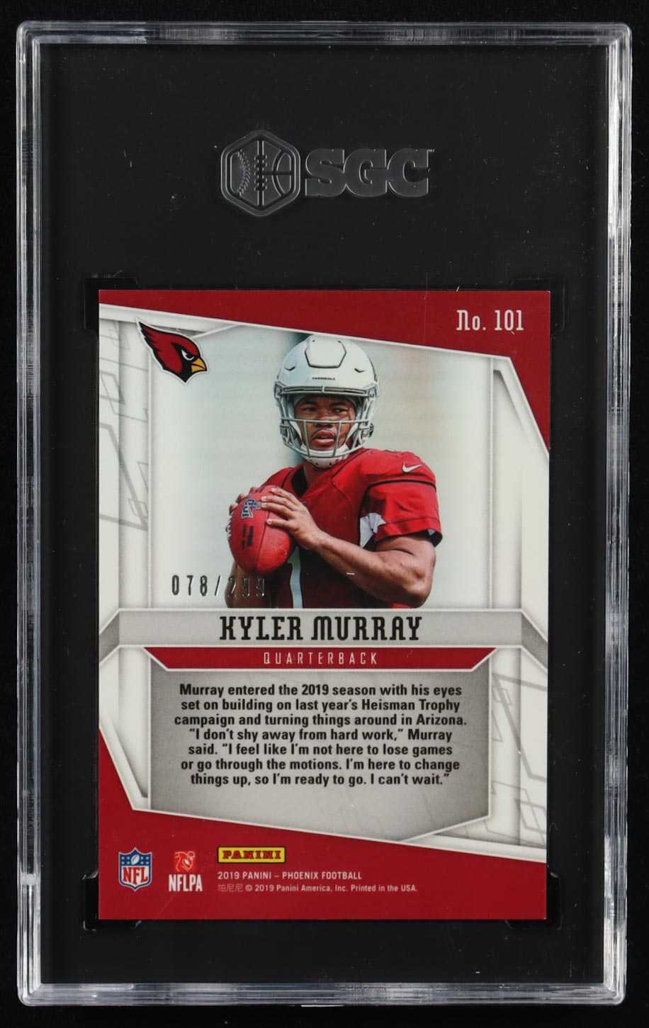 Kyler Murray 2019 Panini Phoenix Red #101 #078/299 RC (SGC 9)