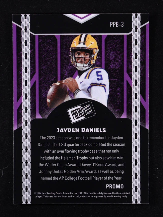 Jayden Daniels 2024 Leaf Press Pass Promos Blue Shimmer #PPB3 RC