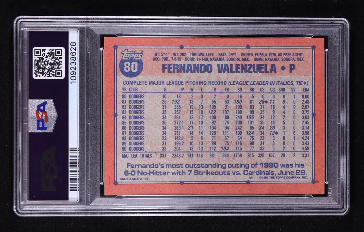 Fernando Valenzuela 1991 Topps Desert Shield #80 COR (104 earned runs/in '90)(PSA 8)