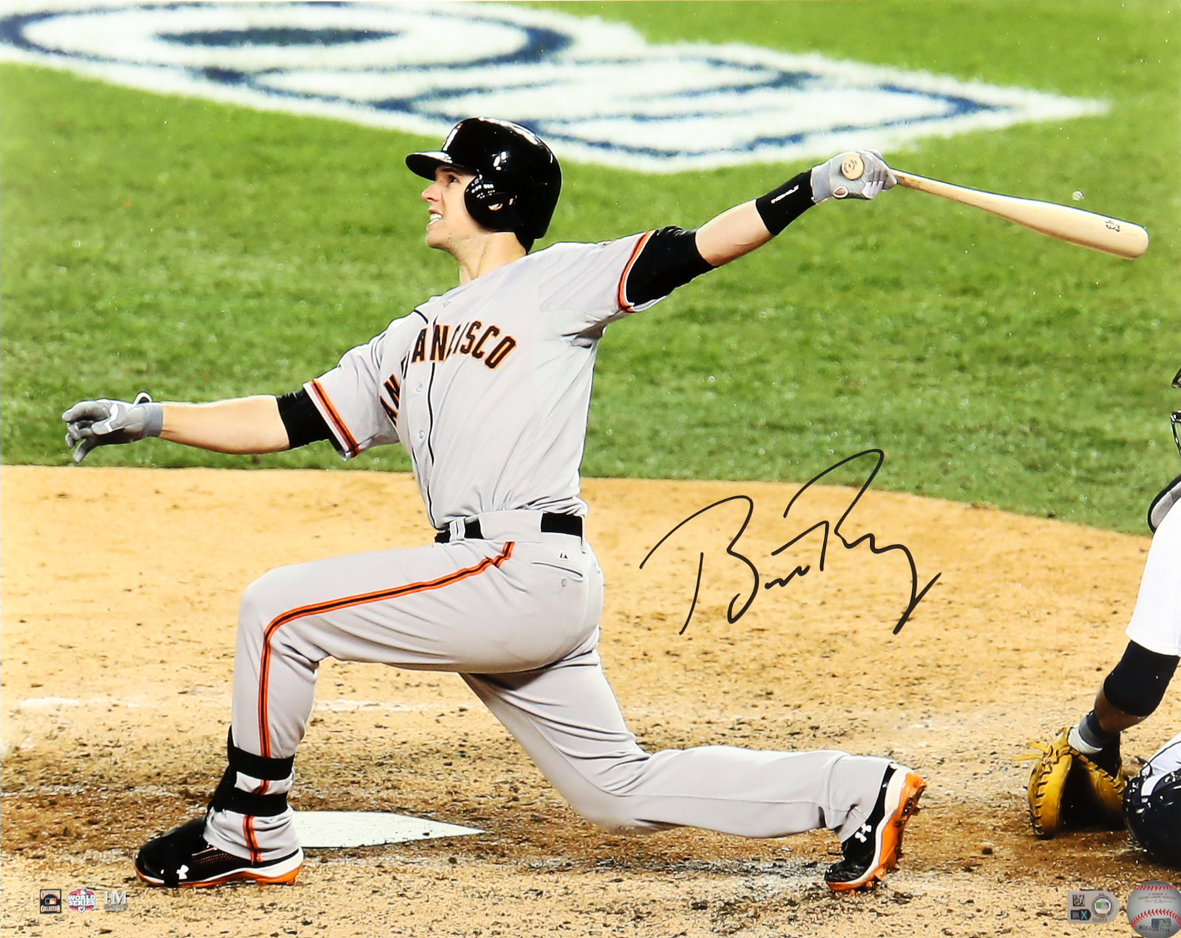 Photo measures 16" x 20" in size and has been hand signed by Buster Posey (San Francisco Giants).