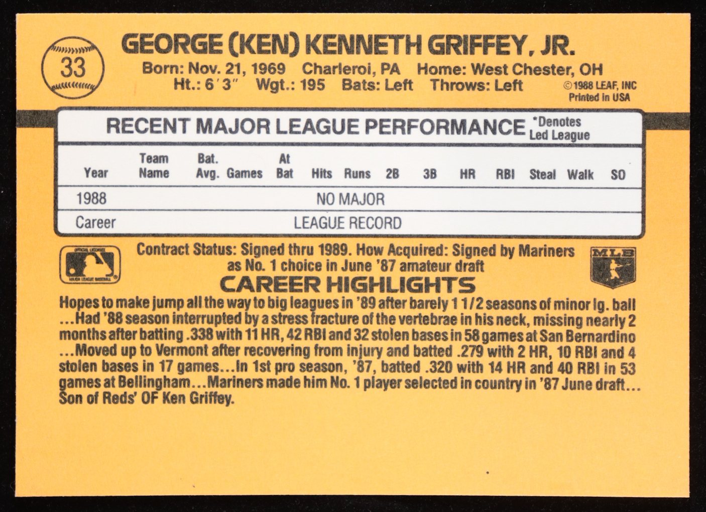 Ken Griffey Jr. 1989 Donruss #33 RR RC