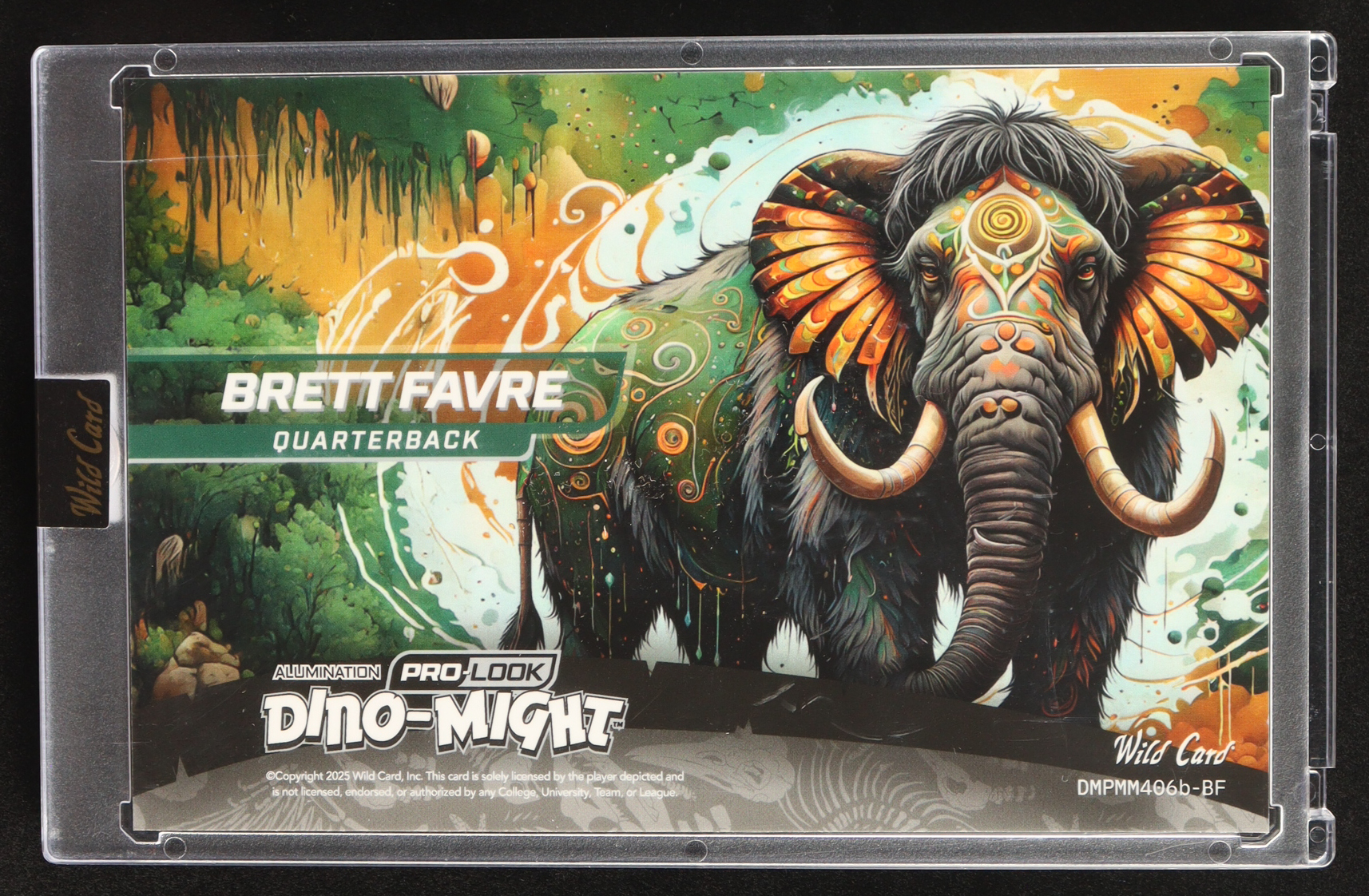 Brett Favre 2025 Wild Card Dino-Might Pro-Look Painted Mammoth Prism #DMPMM406bBF #1/1