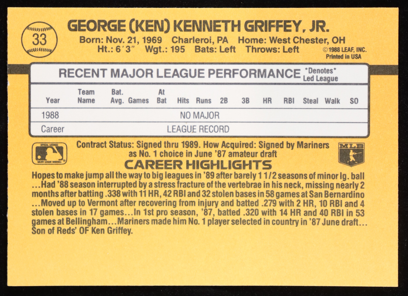 Ken Griffey Jr. 1989 Donruss #33 RR RC