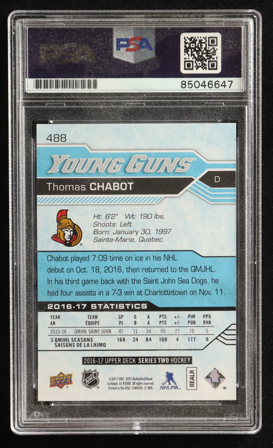 Thomas Chabot SIgned 2016-17 Upper Deck Young Guns Acetate YG #488 (PSA)