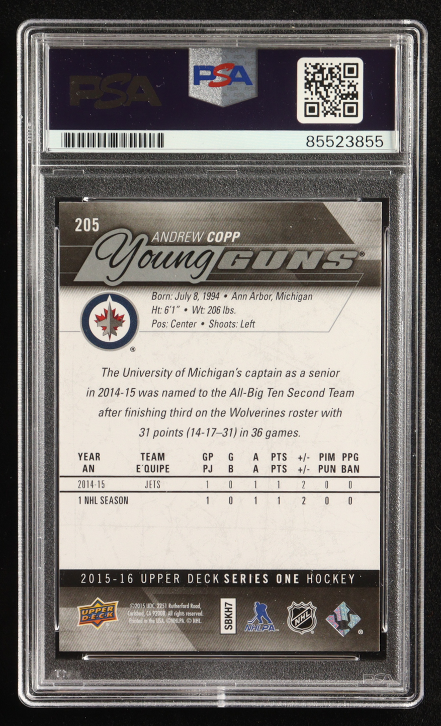 Andrew Copp Signed 2015-16 Upper Deck #205 YG RC (PSA)