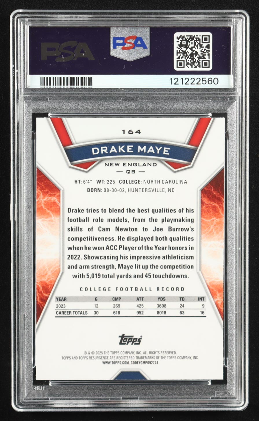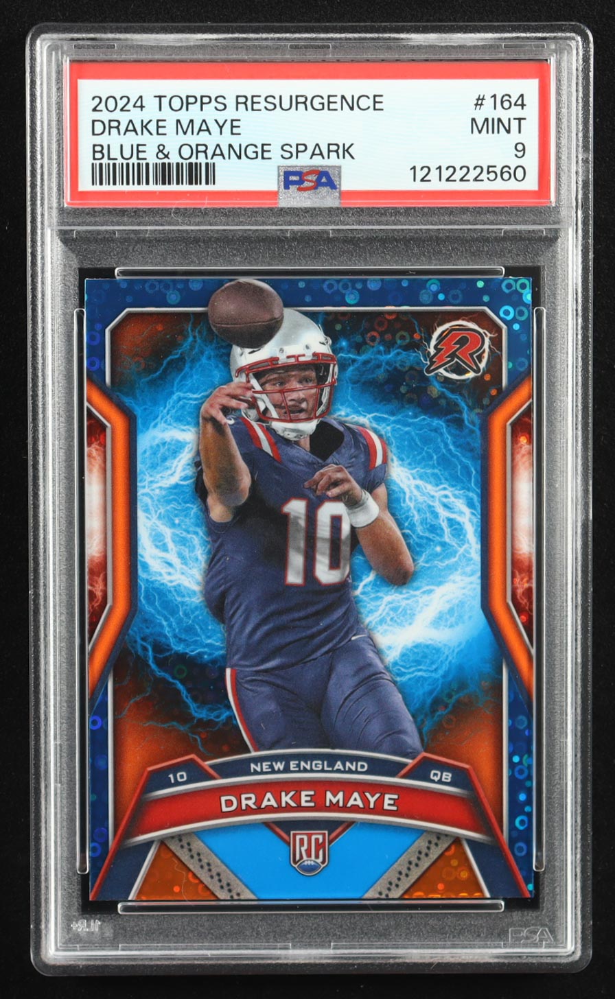 Drake Maye 2024 Topps Resurgence Blue and Orange Spark #164 RC (PSA 9)