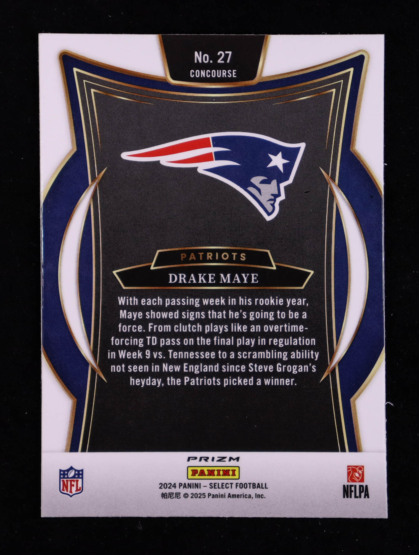 Drake Maye 2024 Select Prizm Black and Green Shock #27 RC