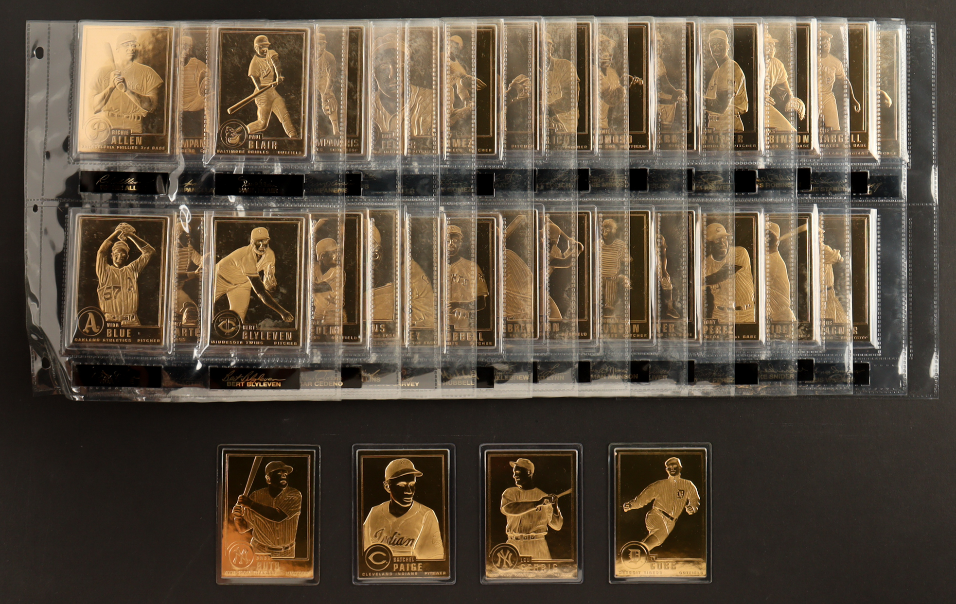Complete Set of (50) Danbury Mint Cooperstown Collection 22kt Gold Baseball Cards With Presentation Binder