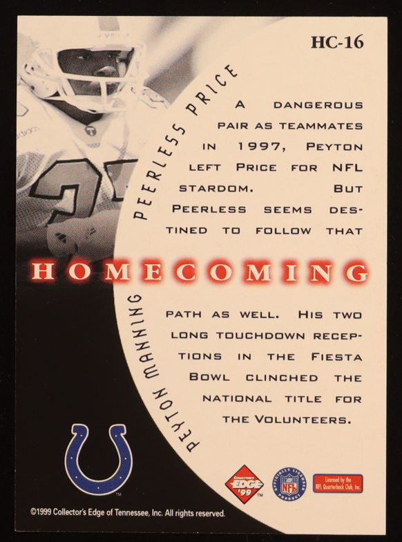 Peyton Manning / Peerless Price 1999 Collector's Edge Supreme Homecoming #H16