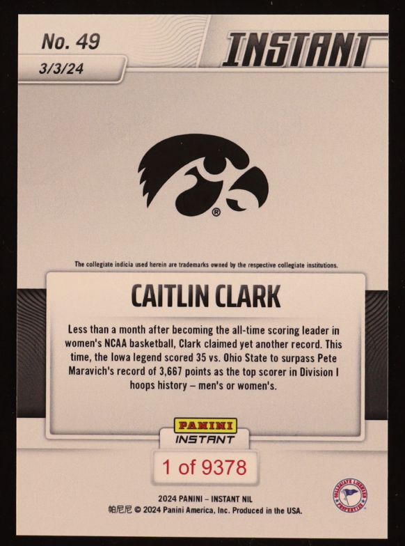 Caitlin Clark 2024 Panini Instant NIL #49