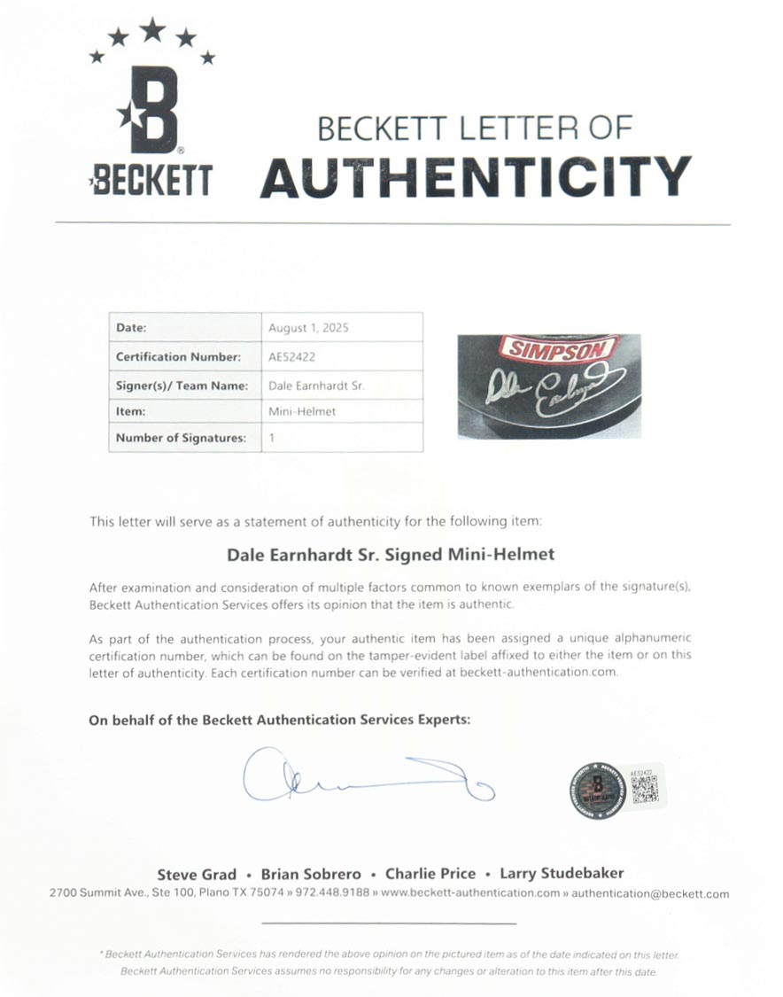 The autograph includes an official Beckett Authentication Services hologram and matching LOA for authenticity purposes.