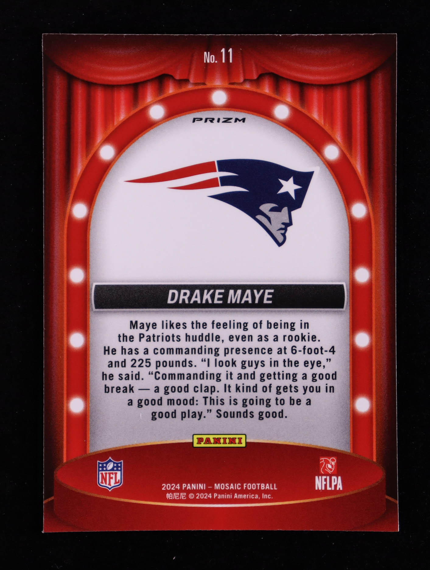 Drake Maye 2024 Panini Mosaic Center Stage Mosaic #11 RC