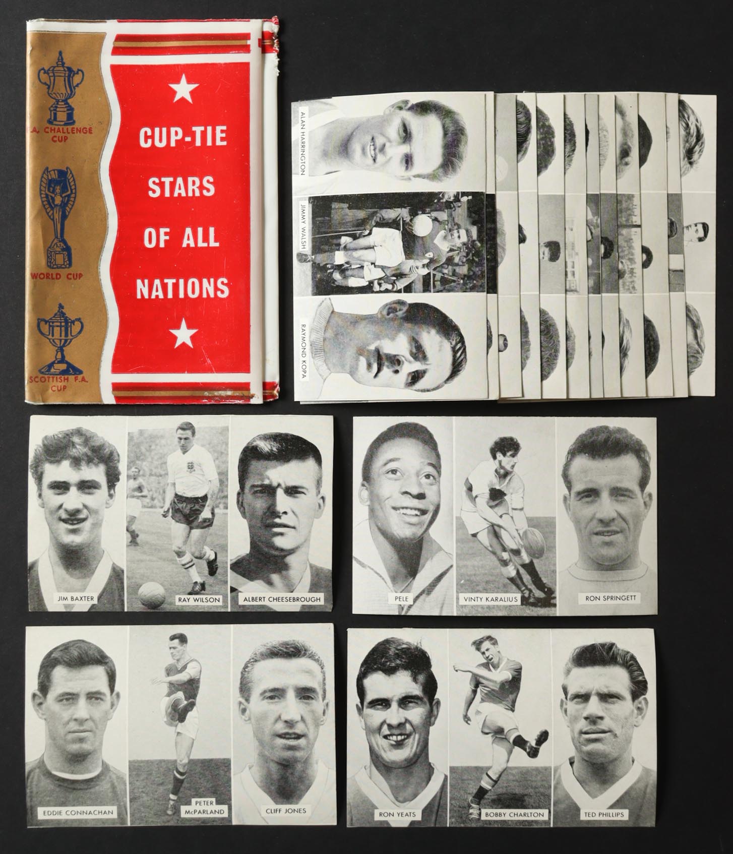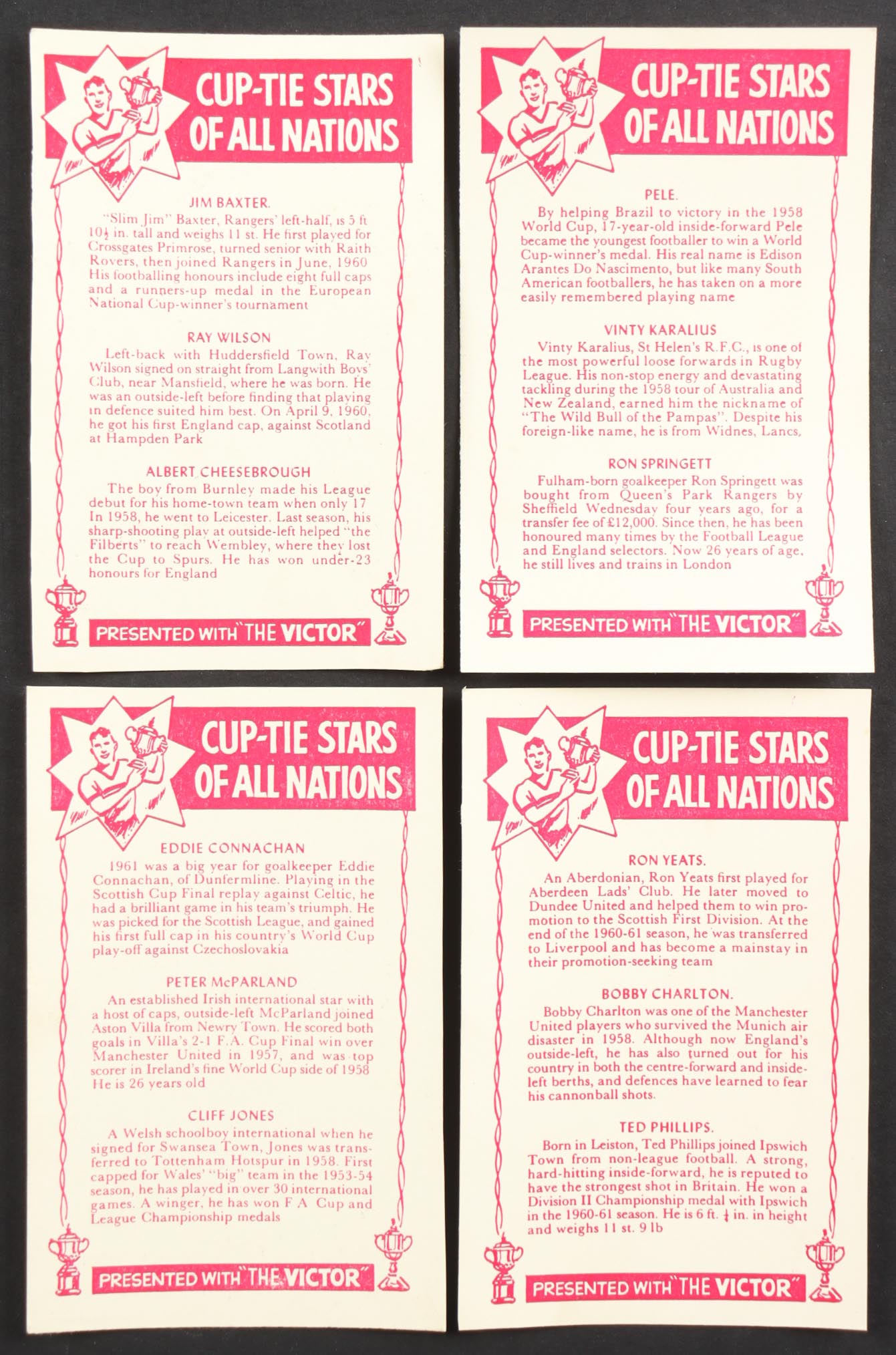 1962 D.C. Thomson The Victor "Cup-Tie Stars of All Nations" Complete Set of (16) Hand-Cut Three-Panel Cards